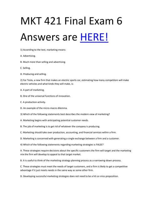 Read Mkt 421 Final Exam Answers Free Doc